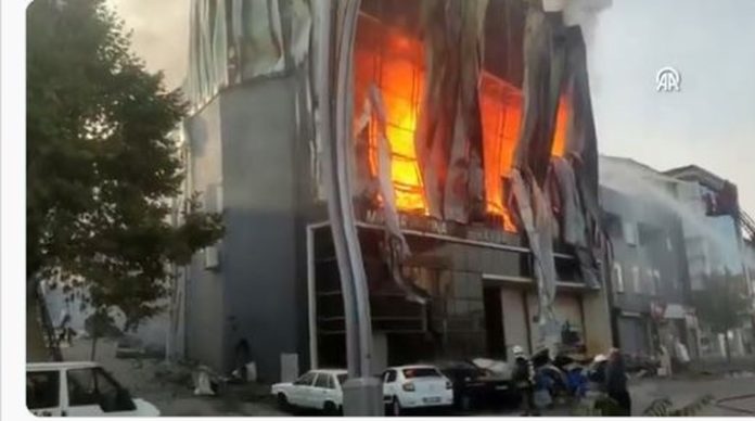 Δύο όροφοι ενός κτιρίου που χρησιμοποιείτο ως αποθήκη και εργοστάσιο παρασκευής αρωμάτων απανθρακώθηκαν από τη φωτιά, τα αίτια της οποίας δεν έχουν γίνει μέχρι στιγμής γνωστά, σύμφωνα με πλάνα που μετέδωσε το τουρκικό ιδιωτικό τηλεοπτικό δίκτυο NTV.